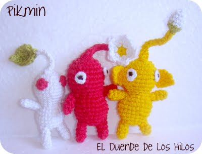 Me faltan el azul y el morado, (Ah! El morado y el blanco son de la segunda parte del juego!) que es el más gordito… pero de momento tengo estos tres que han costado sudor y sangre, están hechos en hilo finito y cada uno mide poco más de un dedo. Me encantan!!!!