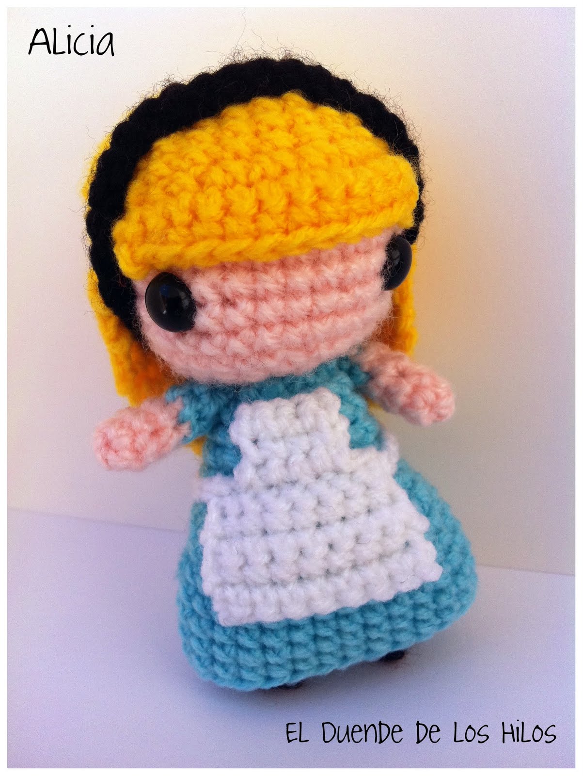 Alicia en el País de las Maravillas. De momento, sólo tengo a Alicia, quería hacer también a la famosa reina roja pero aún no tengo claro como hacerle la peluca y el vestido… a ver qué sale!!! Es de los personajes que me ha salido más fácil, incluido el delantalillo (y eso que es pequeñito). Una apreciación: Cuando se la enseñe a mi novio a medio hacer (sin delantal, ni felpa del pelo) dijo que era otro personaje (por el vestido) pero le faltaba…”un detalle” que tendréis que adivinar, tenía razón!!. Si lográis adivinar que personaje, sabréis qué cuento será el protagonista de próximas entradas!!! ^__^