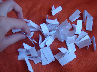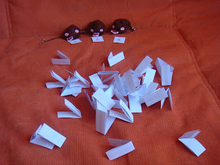 Al fondo, las tres pequeñas galletas esperando nerviosas… en primer plano, toooodos los papelitos con los participantes!