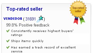 A lo mejor soy un poco pejillera, jaja, pero más que nada escribo porque me da pena que se piense mal de algunos vendedores de eBay. Te cuento: el color de la estrella que tenga un usuario en eBay está en realidad relacionado con el número de puntuaciones, y los que tienen la estrellita roja es porque tienen entre 1000 y 4999 puntos.