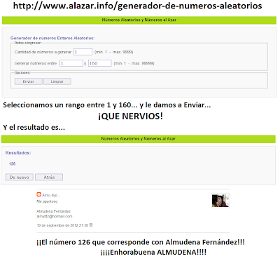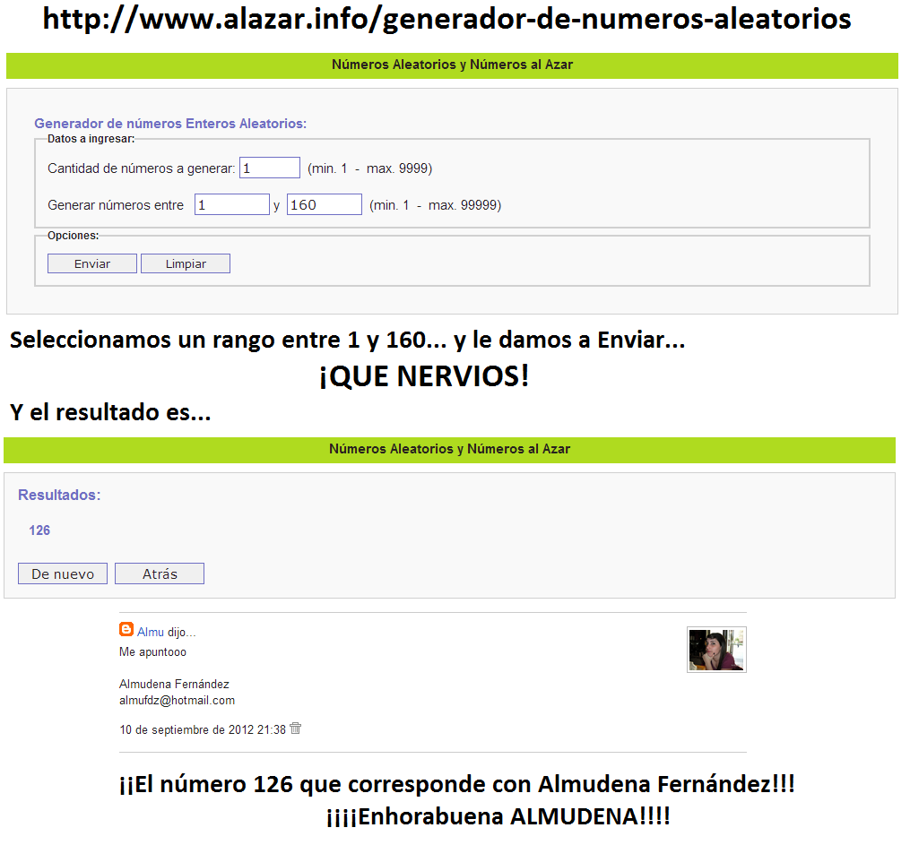 Se ha usado la página web http://www.alazar.info/ para seleccionar 1 solo número de entre todos los números adjudicados… Sólo podía ganar uno!!